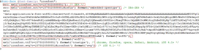 解压下载下来的download.zip文件,将其中的iconfont.css文件拷贝到小程序utils目录下,重命名为iconfont.wxss,打开iconfont.wxss,将@font-face部分的一些url引用(红色框选部分)删除掉(看不清楚点击图片看大图哦):